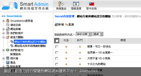 目前網站後端管理系統 SmartAdmin 已全面性的搭載創造力所有的專案上。